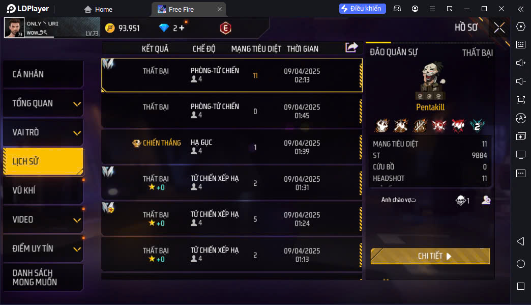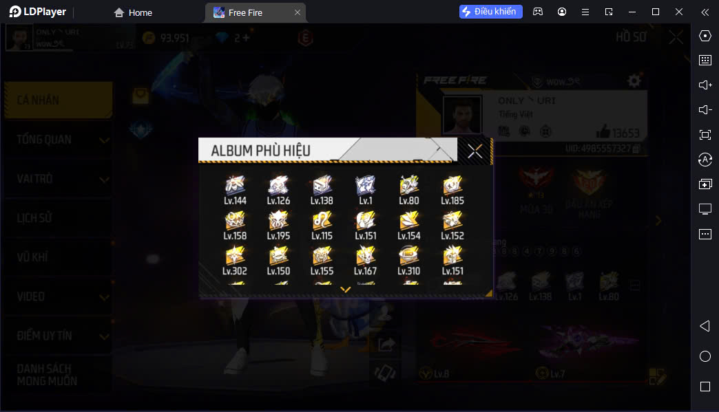 Hình ảnh chi tiết của tài khoản