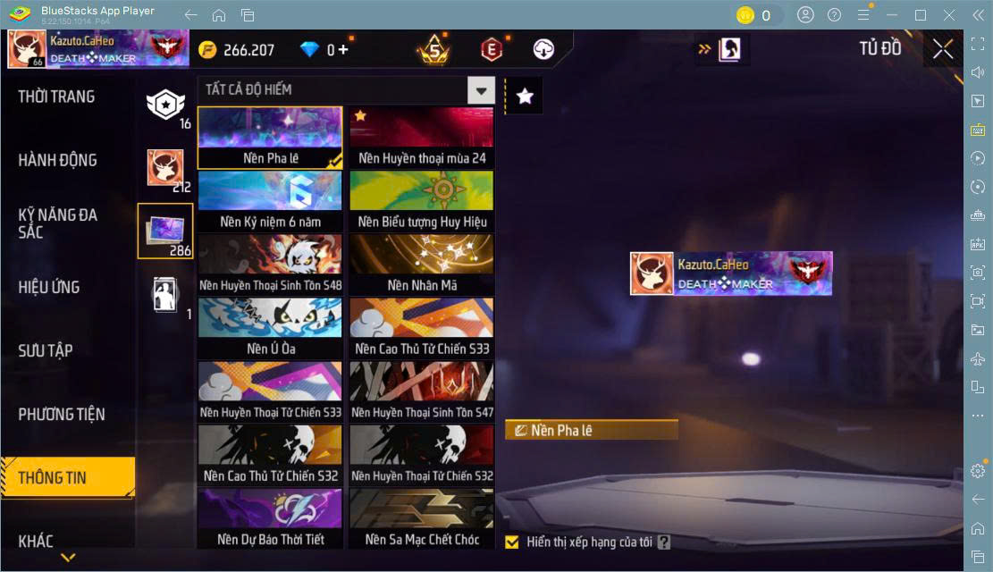 Hình ảnh chi tiết của tài khoản