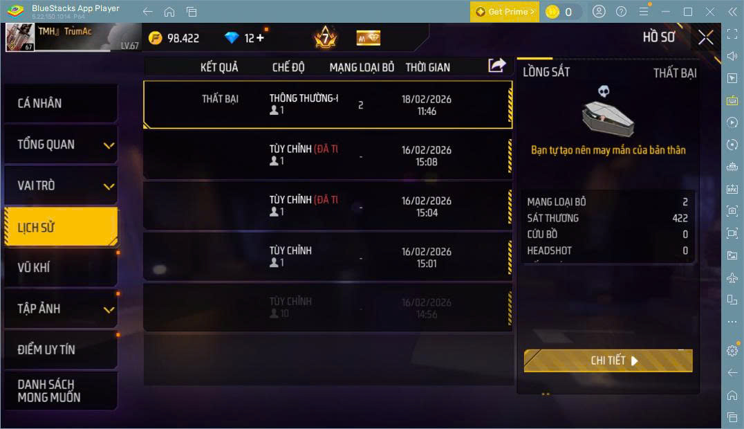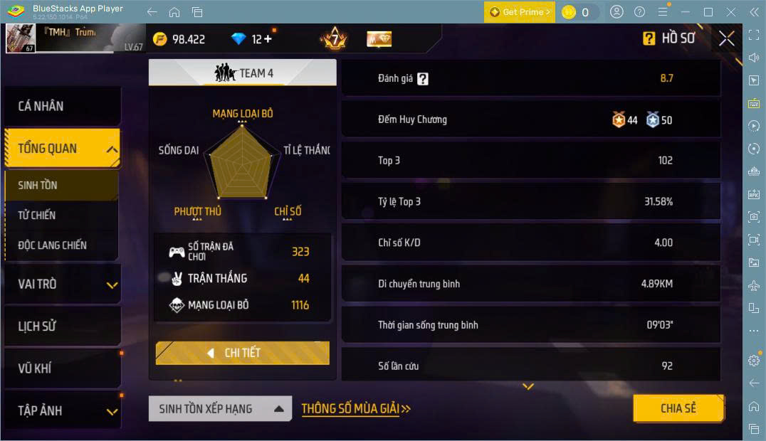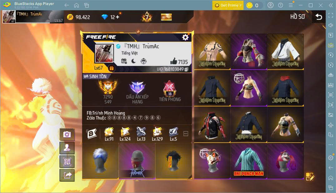 Hình ảnh chi tiết của tài khoản