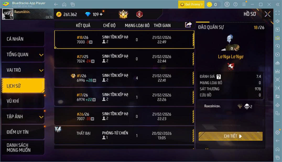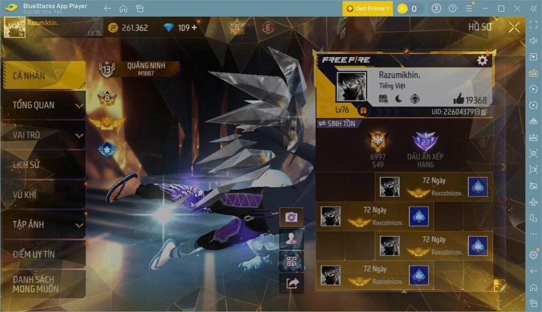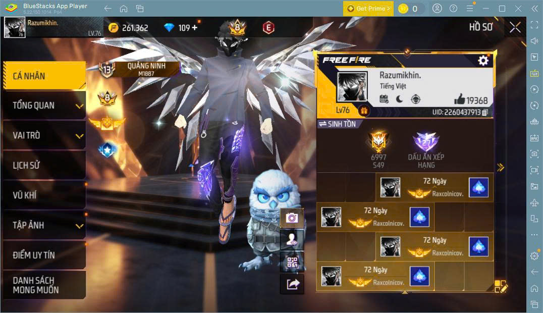 Hình ảnh chi tiết của tài khoản